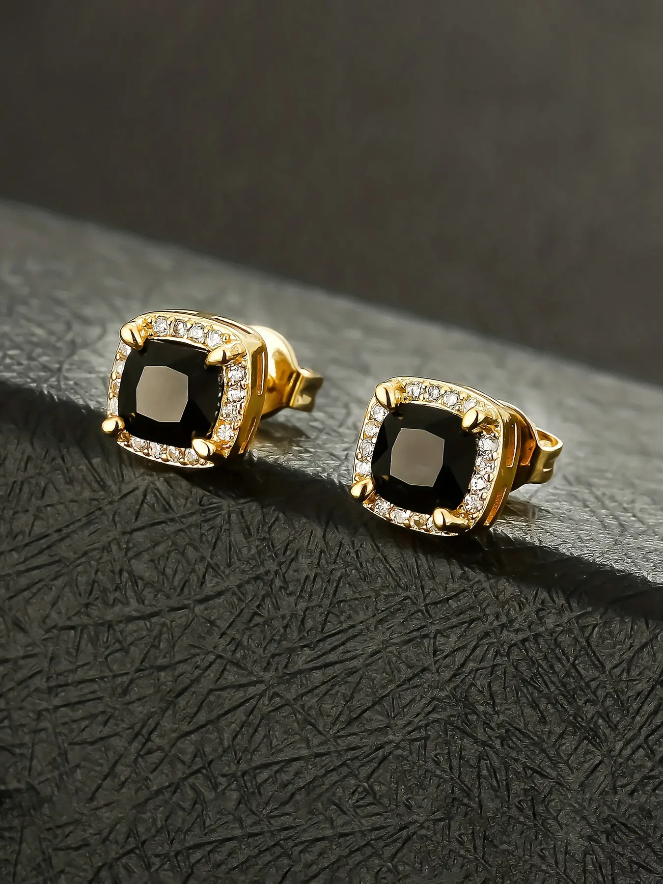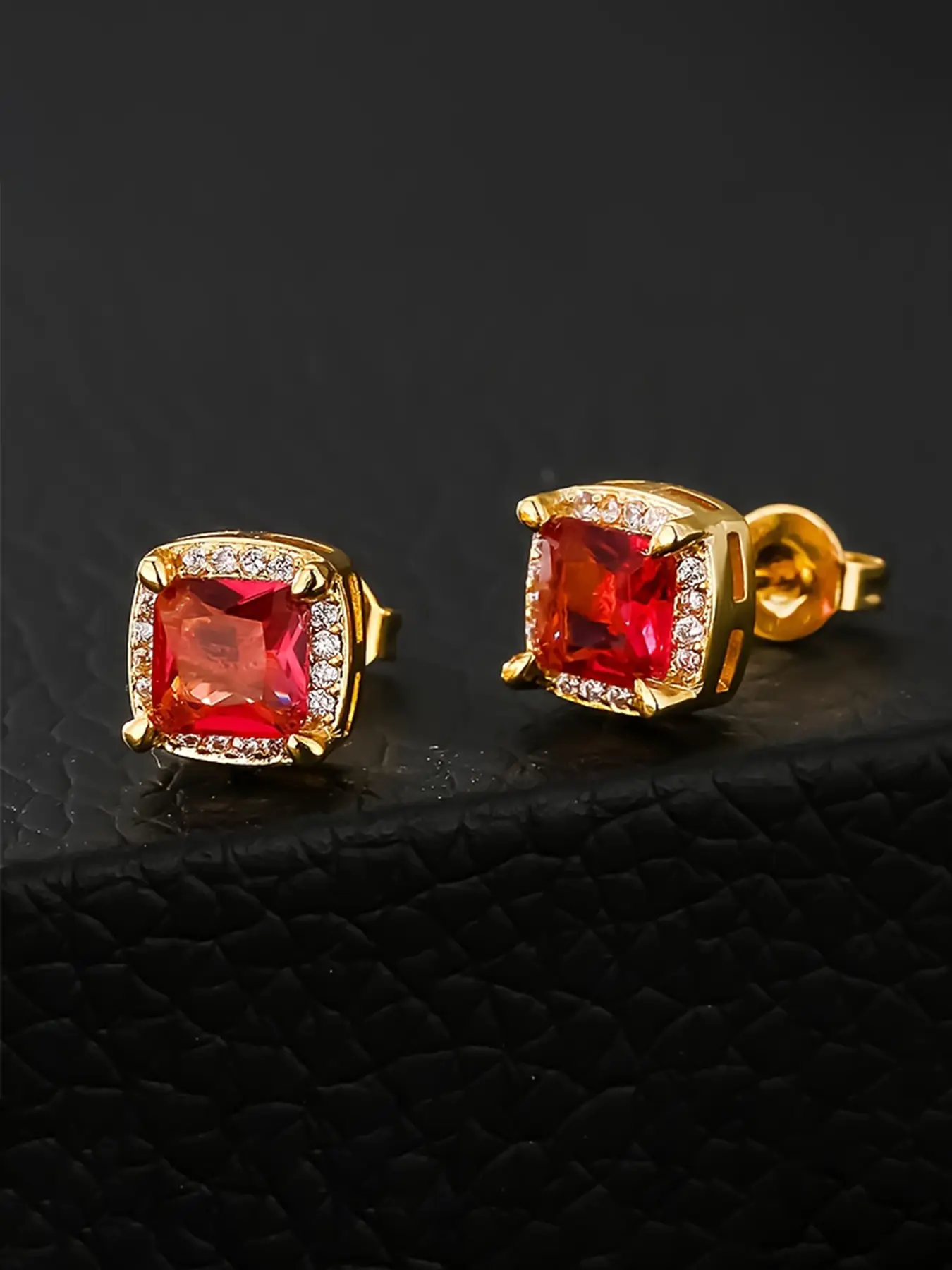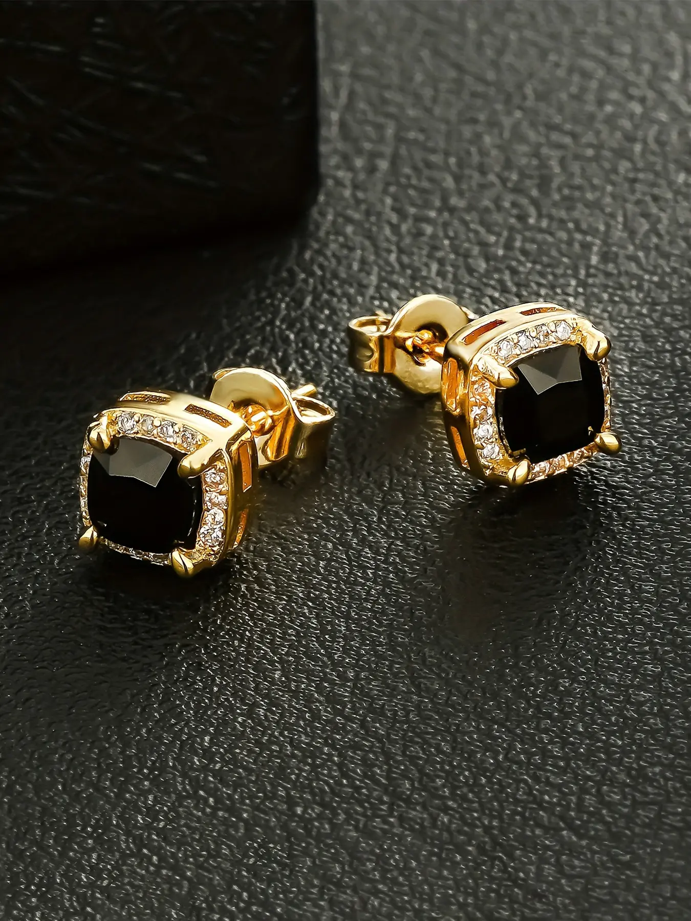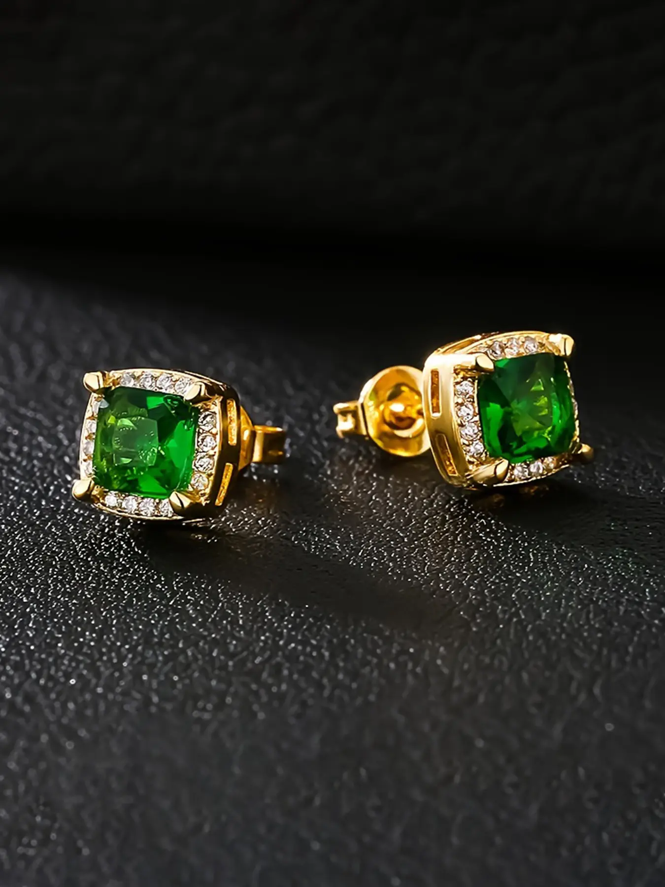 ICED CHICS 1 pair of 18k gold-plated square synthetic zirconia stud earrings, suitable for both men and women, 6mm mini hip-hop punk jewelry, fashionable and avant-garde accessories, creating eye-catching looks