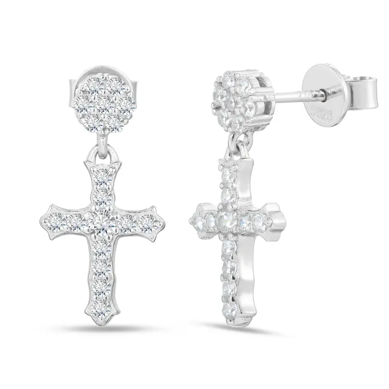 5. 【#E536】Mother's Day gift Iced Out Cross Drop Earring With Flower Stud UCCIYO Synthetic Moissanite Earrings For Women 925 Sterling Silver Stud Earring Men Hip Hop Jewelry Couple Gift