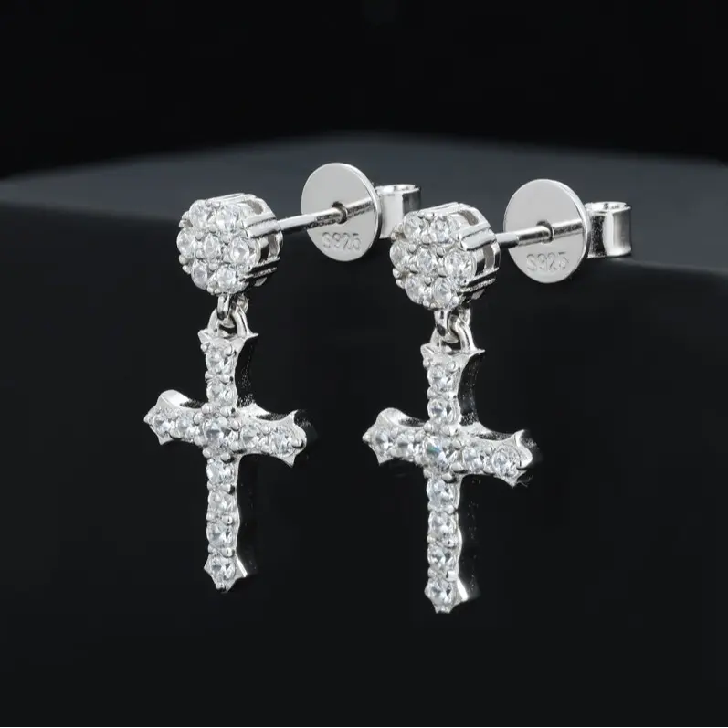 【#E536】Mother's Day gift Iced Out Cross Drop Earring With Flower Stud UCCIYO Synthetic Moissanite Earrings For Women 925 Sterling Silver Stud Earring Men Hip Hop Jewelry Couple Gift