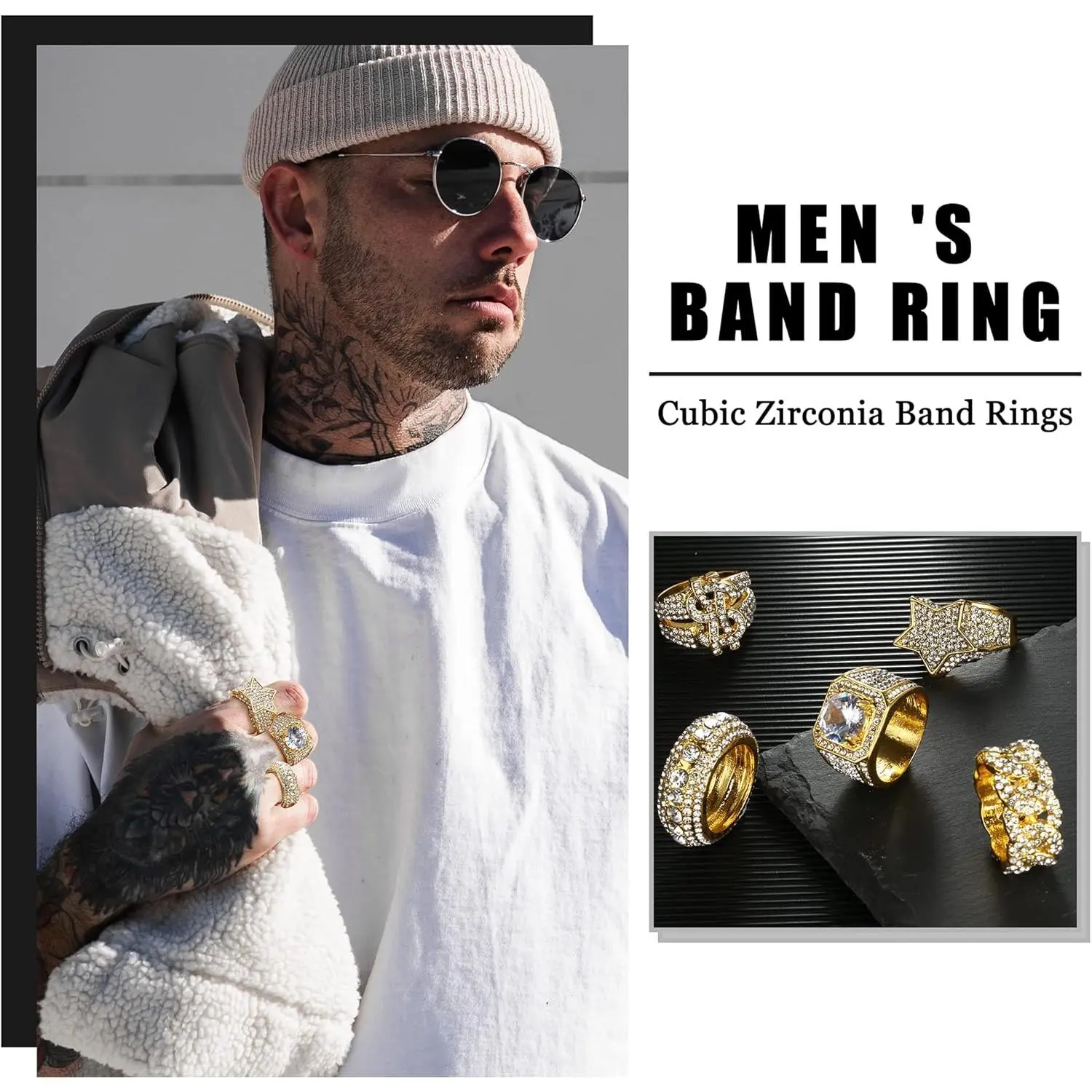 ·Rigorous Craftsmanship:Our bling rings are made of high-quality alloy material, the gold pinky ring for men plated with 14k gold and white gold for many times, so the gold and silver rings for men won't tarnish or fade easily; special polishing treatment, comfortable to wear, won't hurt your fingers.