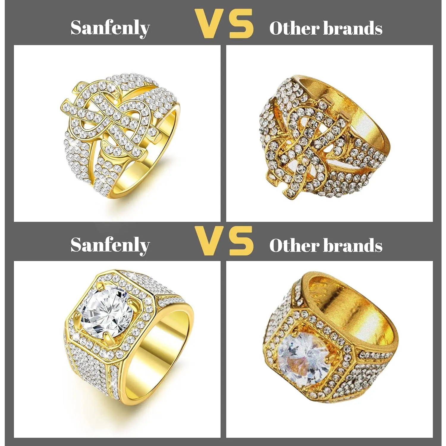 ·Sanfenly Service: A good jewelry comes from meticulous production. A pleasant shopping experience comes from high-quality products and efficient customer service responses, these will be realized in Sanfenly. If you are not satisfied with our bling ring set, we will provide satisfactory solution.