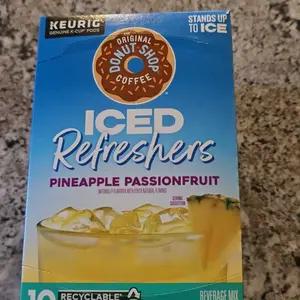 This pineapple passion fruit iced refresher k cup is my literal favorite. I like to add lemonade, but it's good, even if you don't add anything at all.