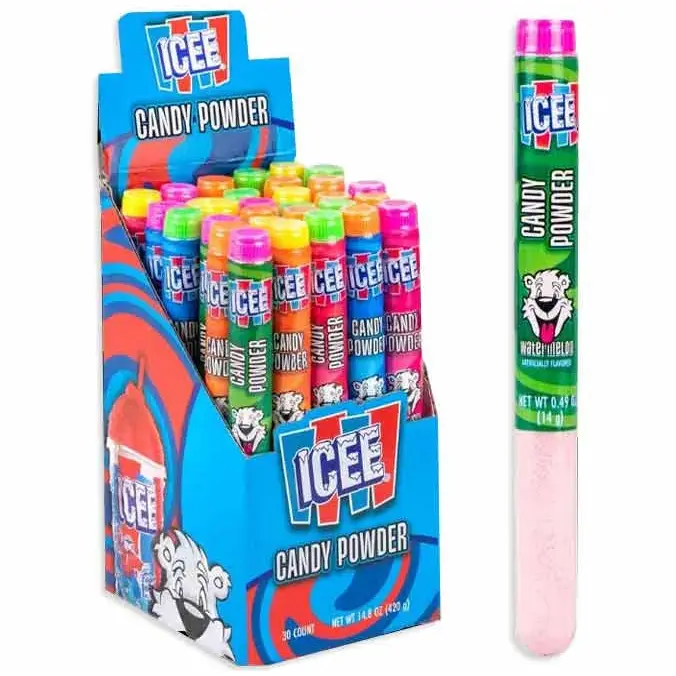 The ICEE Candy Powder Tubes bring the bold and refreshing flavors of your favorite ICEE drinks into a sweet and tangy powdered candy, available at Candy Warehouse! Each tube is bursting with delicious flavor, letting you enjoy the iconic ICEE experience in a fun and portable form. Simply flip the cap, pour, and enjoy for an instant flavor rush! Perfect for on-the-go snacking, party favors, or satisfying your sweet tooth, grab your ICEE Candy Powder Tubes today from Candy Warehouse and enjoy a frosty blast of candy fun!