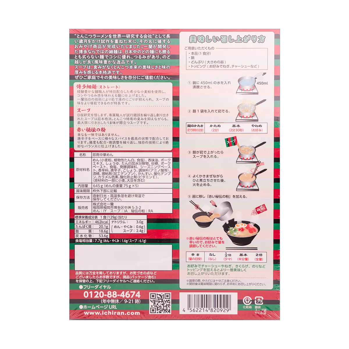 ICHIRAN RAMEN Japanese Hakata-Style Tonkotsu Ramen with Thin Noodles - 5 Packs* 4.55oz
