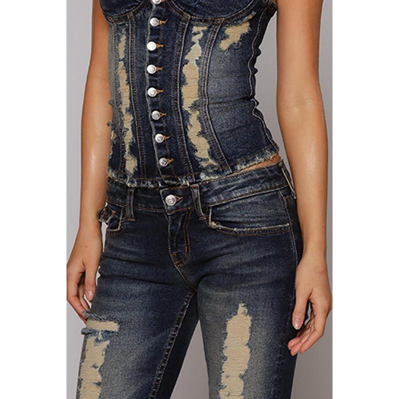 Judy Blue HARDY High Rise Double Button Frayed Hem Jeans