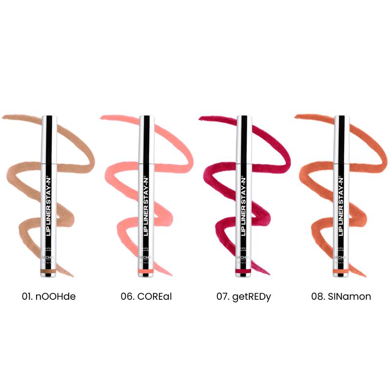 Meet your new lip wardrobe: a 4-pack of our viral Lip Liner STAY-Ns, built to line, stain, and stay. Each shade glides on smooth and peels off to reveal a longwear tint that actually lasts — no fading, no feathering, no mid-day meltdown.