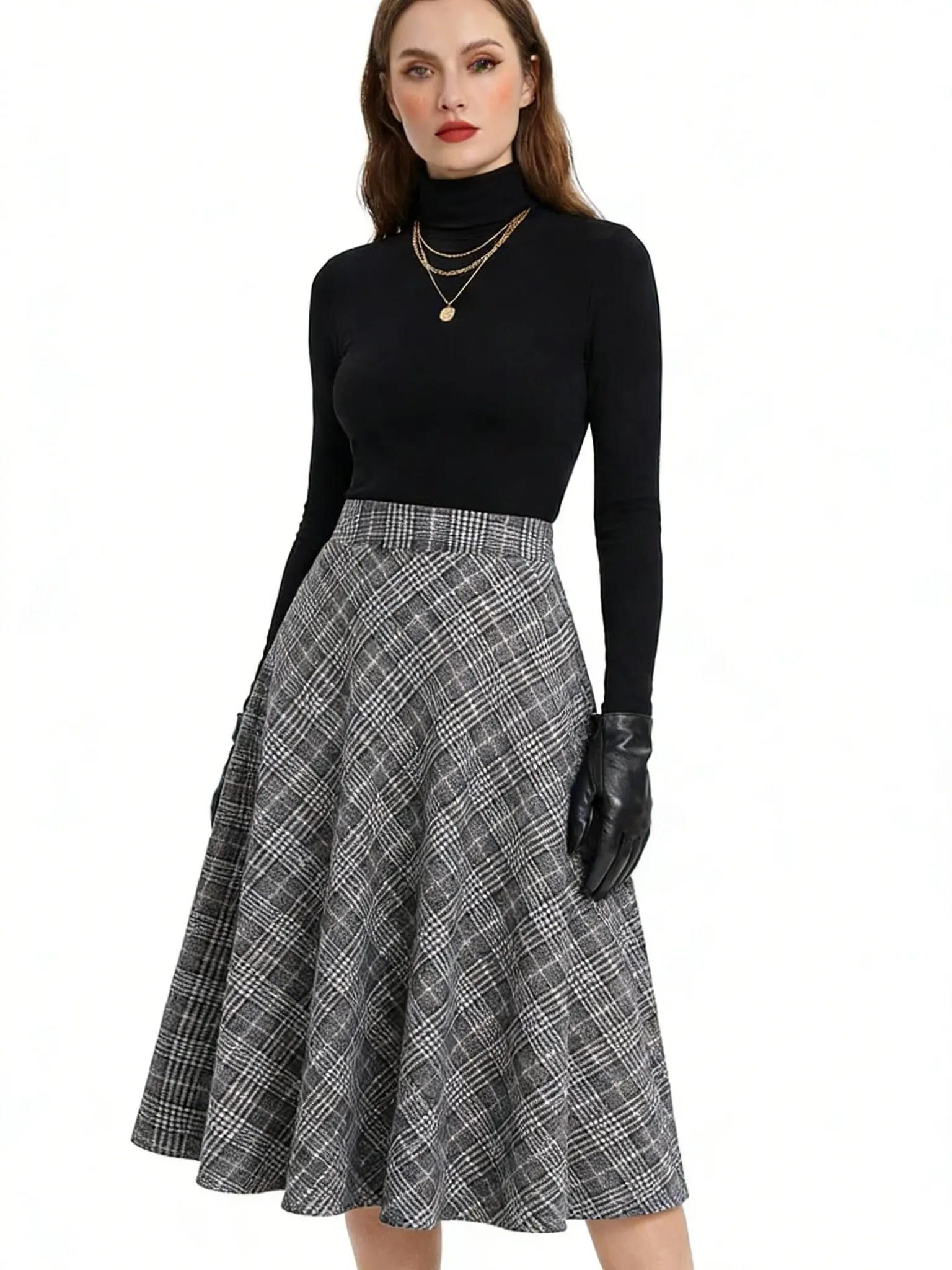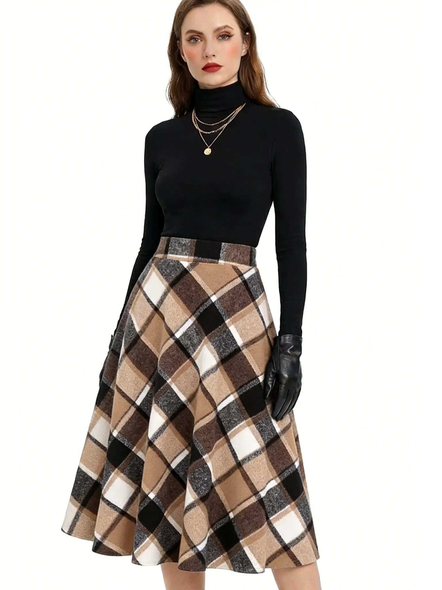 ·IDEALSANXUN women’s fall/winter wool high waist A-line plaid tartan maxi long skirt.