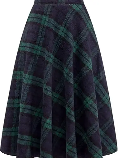 5. IDEALSANXUN Womens Plaid Wool Skirts Elastic Waist A-Line Pleated Tartan Long Skirts