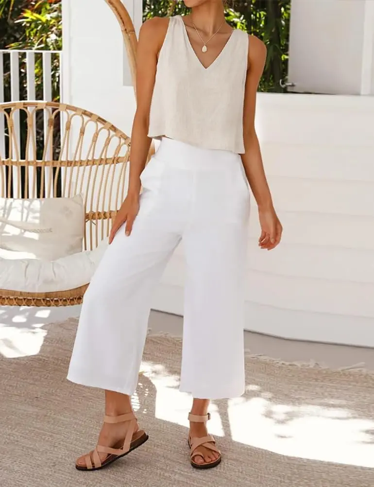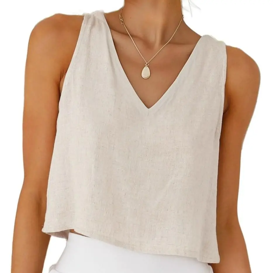 ·Features: V neck, sleeveless tank tops cropped length cotton linen shirt