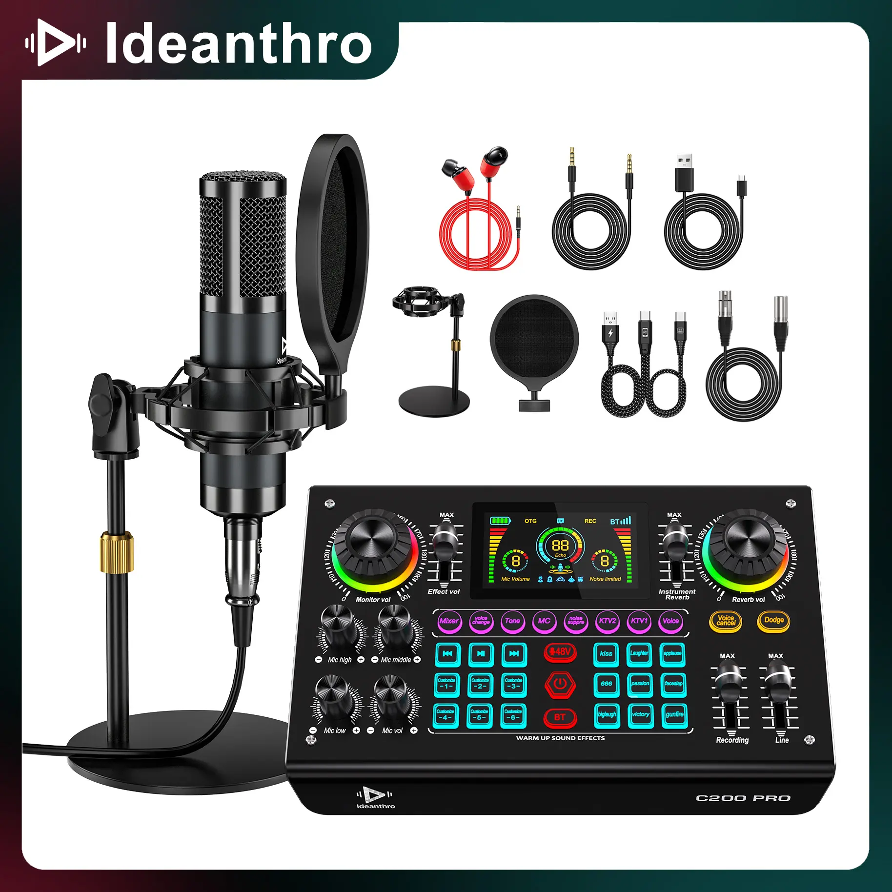 【Professional Dual-Core DSP Sound Card】:Equipped with a built-in dual-core DSP digital chip, the C200 Pro delivers crystal-clear, low-noise audio for professional live streaming, podcasting, and singing. It supports multiple scene modes and ensures real-time processing for stable and natural sound output across all platforms.