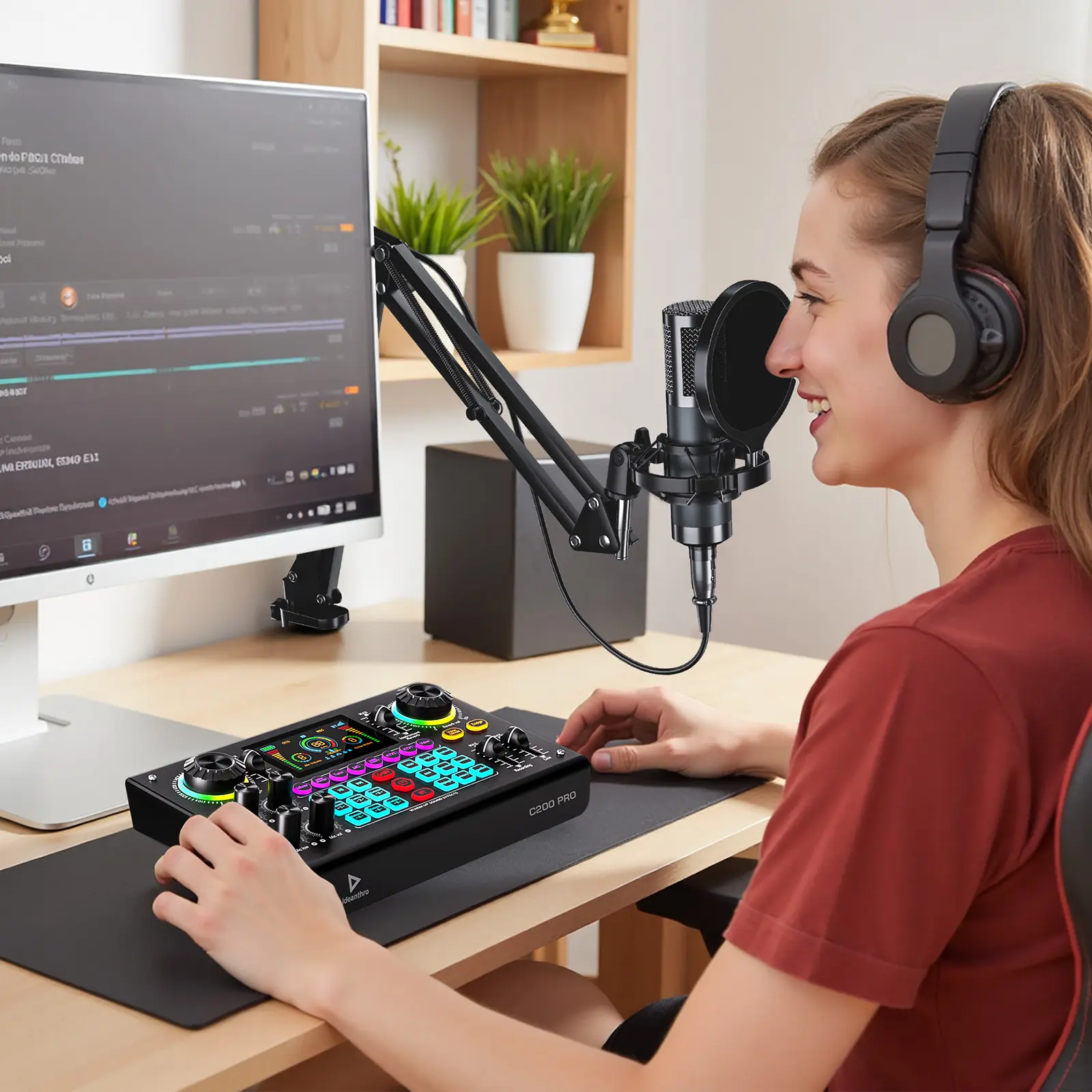 C200 Pro XLR audio interface build in 3-band EQ, Reverb, Voice Changers, Timbre, Pitch, #b Pitch, Autotune, and more, tune to your voice in real time, make your content creations more professional and entertainment.