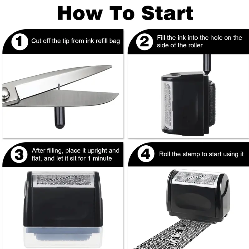 Identity Theft Protection Roller Stamp Set, 2-Pack with 4 Refills, Blocks ID & Address Info, Essential for Home & Office Security