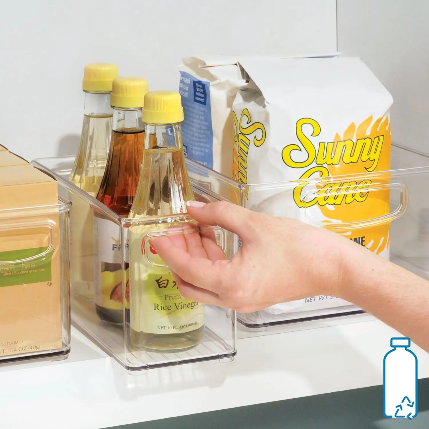 Keep everything tidy and simplify your everyday with the iDesign Slim Plastic Storage Bin. Its slim, stackable shape maximizes every inch of space and fits neatly in pantries, cabinets, refrigerators, and shelves while maximizing vertical space. This narrow bin makes it easy to find what you need, whether it's spices, snack packs, condiments, or drink cans, eliminating the need to dig through cluttered shelves or drawers. Finished with two easy-grip carry handles, this portable solution facilitates easy transport from around the kitchen or throughout the home. Made with durable BPA-free clear recycled plastic, the refrigerator organizer bins stand up to everyday use. With iDesign, you can live simply and sustainably every day.