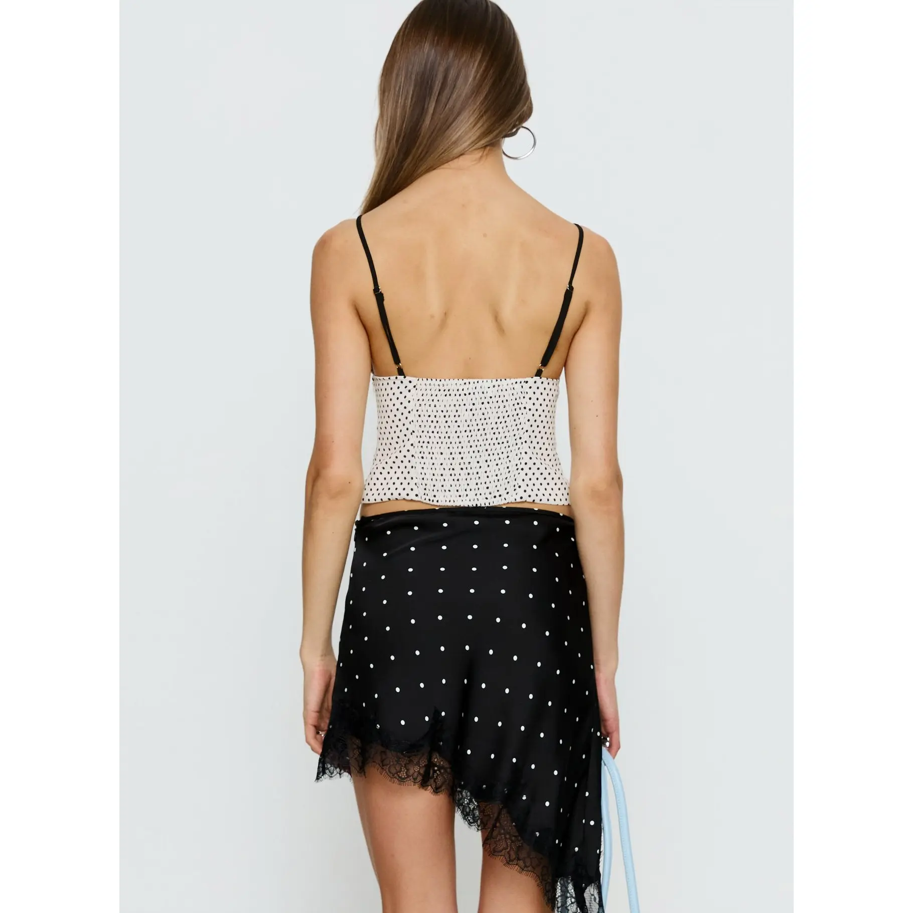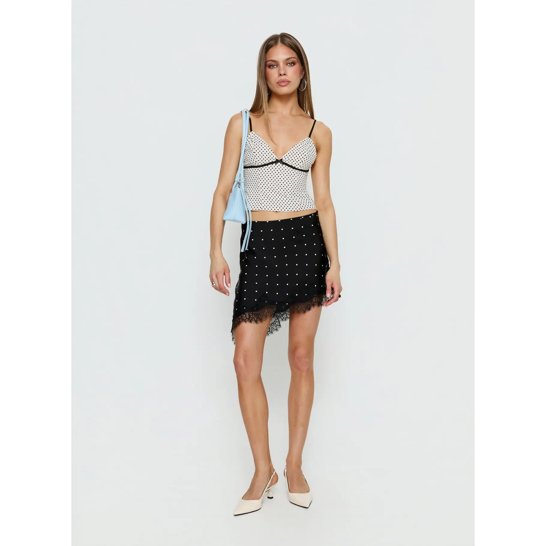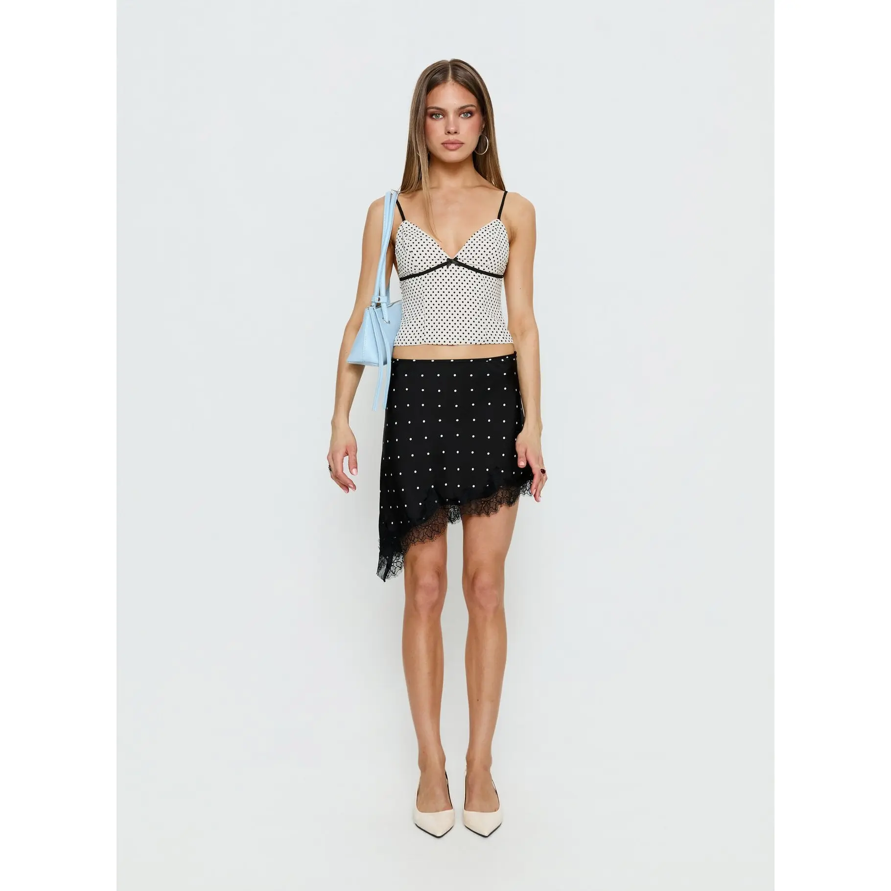 Idette Lace Asymmetrical Mini Skirt Black Polka Dot