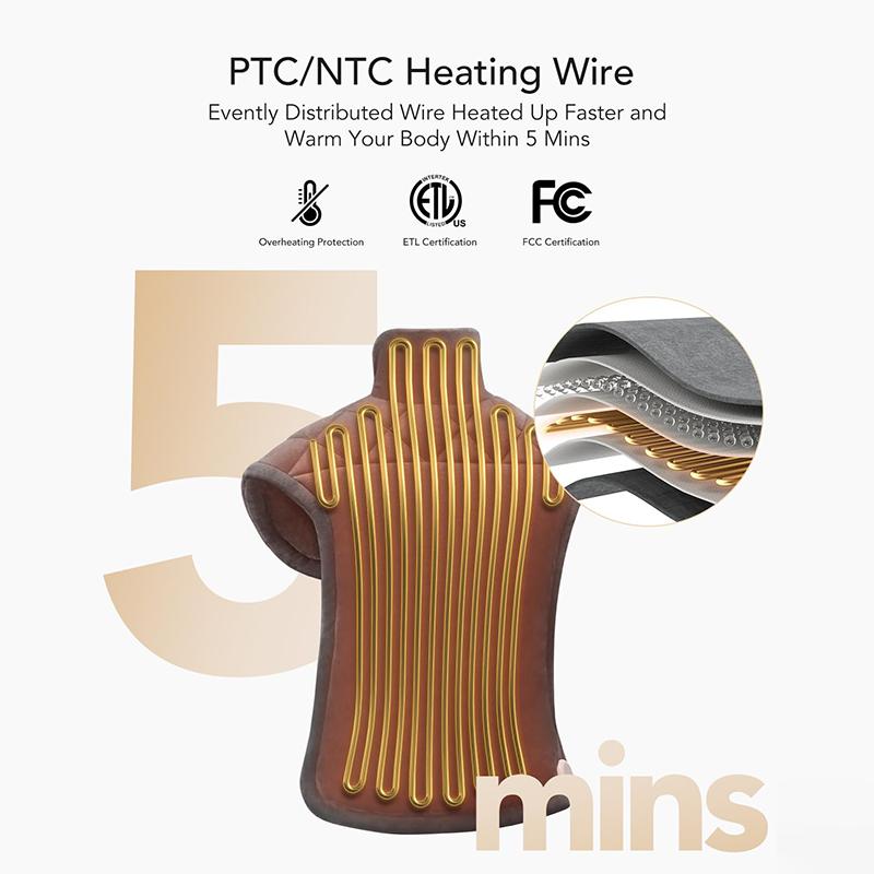 Using it is not that hot for me compared to old blue heating pad I got I thought my shoulders would be more heated but it's just weighted. The back part I thought would be hotter I had it on maximum I will return
