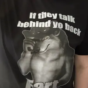 Funny lol. Haven’t worn it yet. Shirt material is nice and fits nice. Small fits more like a medium on me