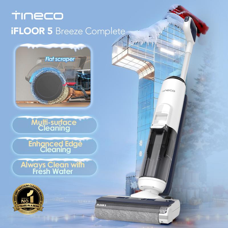 • Fresh Water Cleaning –Equipped with Tineco’s innovative flat scraper, it clears away debris and squeezes out dirty water inside to ensure a clean brush roller every time, allowing you to clean floors with a clean brush. After cleaning, the iFLOOR 5 Breeze Complete leaves your floors completely dry and streak-free in a matter of seconds.