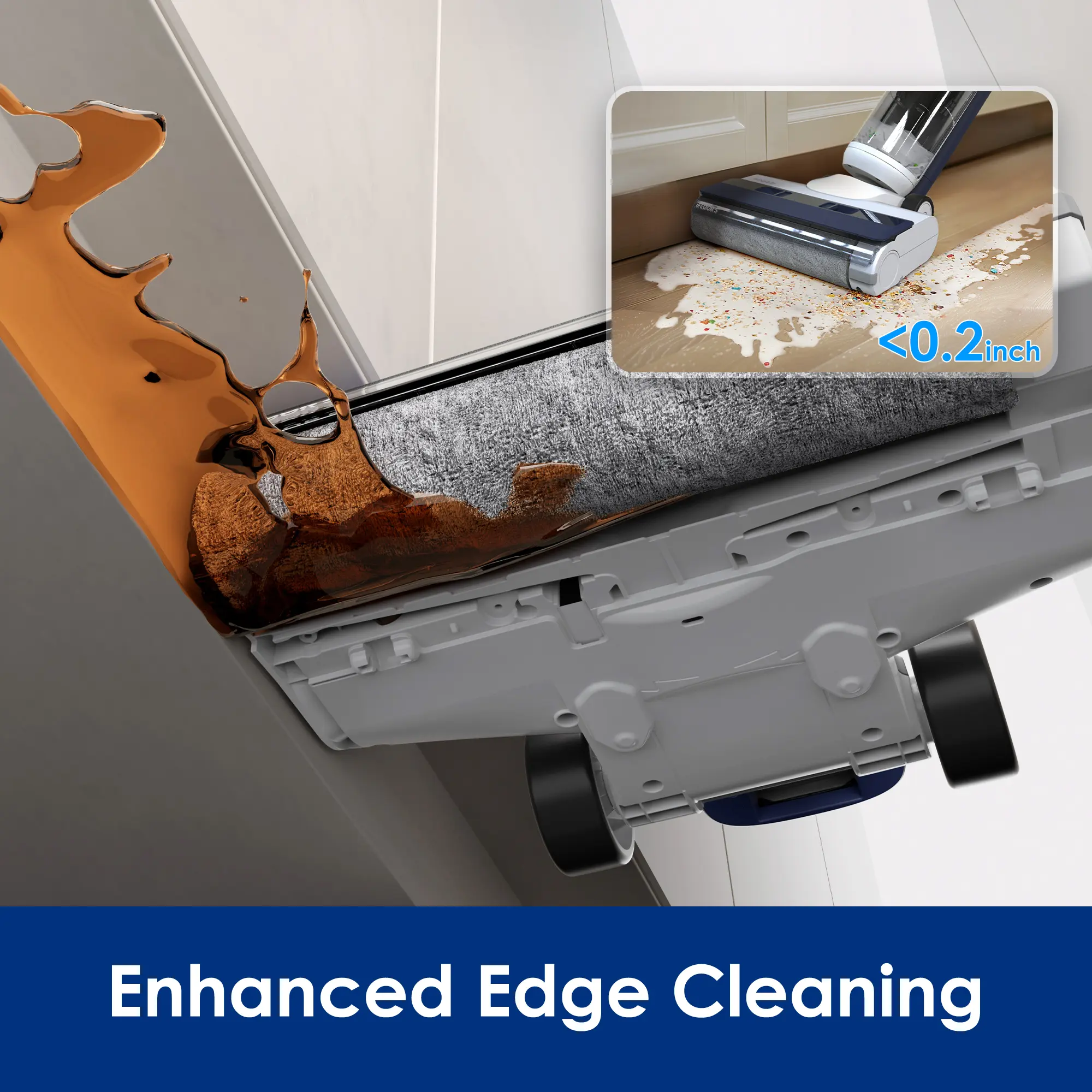 • Enhanced Edge Cleaning - Tineco's exclusive brush head easily reaches narrow spaces and ensures precise cleaning along baseboards and in hard-to-reach corners, with the capability to clean edges and corners as narrow as 0.20 inches.