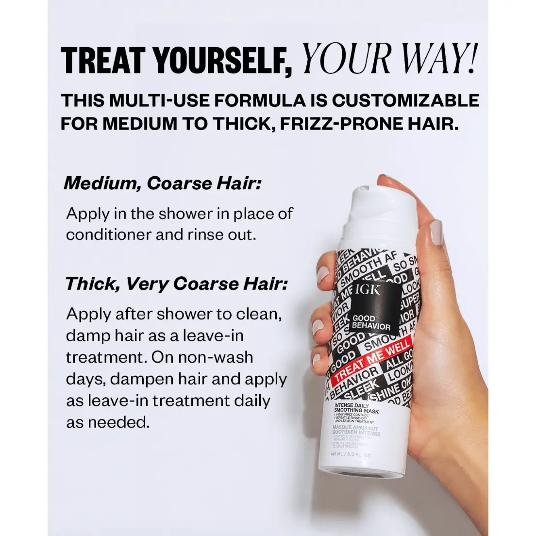 @IGK Hair Good Behavior Ultra Smooth Shampoo and Conditioner AND the Intense Daily Maskfor smooth, frizz free hair. #igkhair #igk #hairtok #frizzyhair #frizzyhairtips