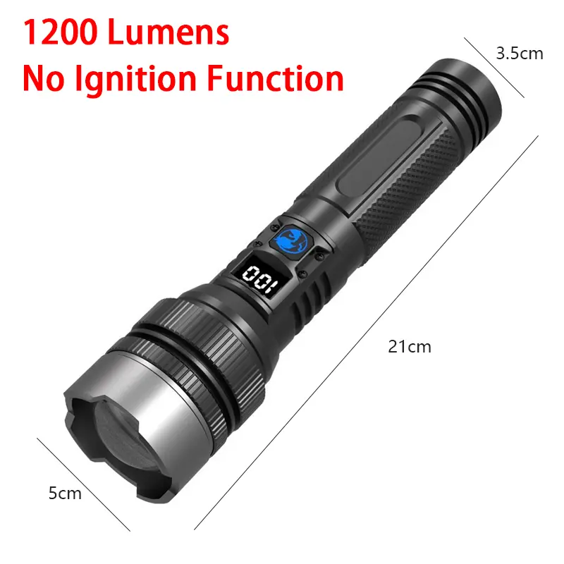 Lgnition Function Flashlight 2400-Lumen 2-in-1 Digital Display Flashlight—Rechargeable, Zoomable, Waterproof, and Adjustable Brightness—Ideal for Outdoor Camping and Emergency Situations.