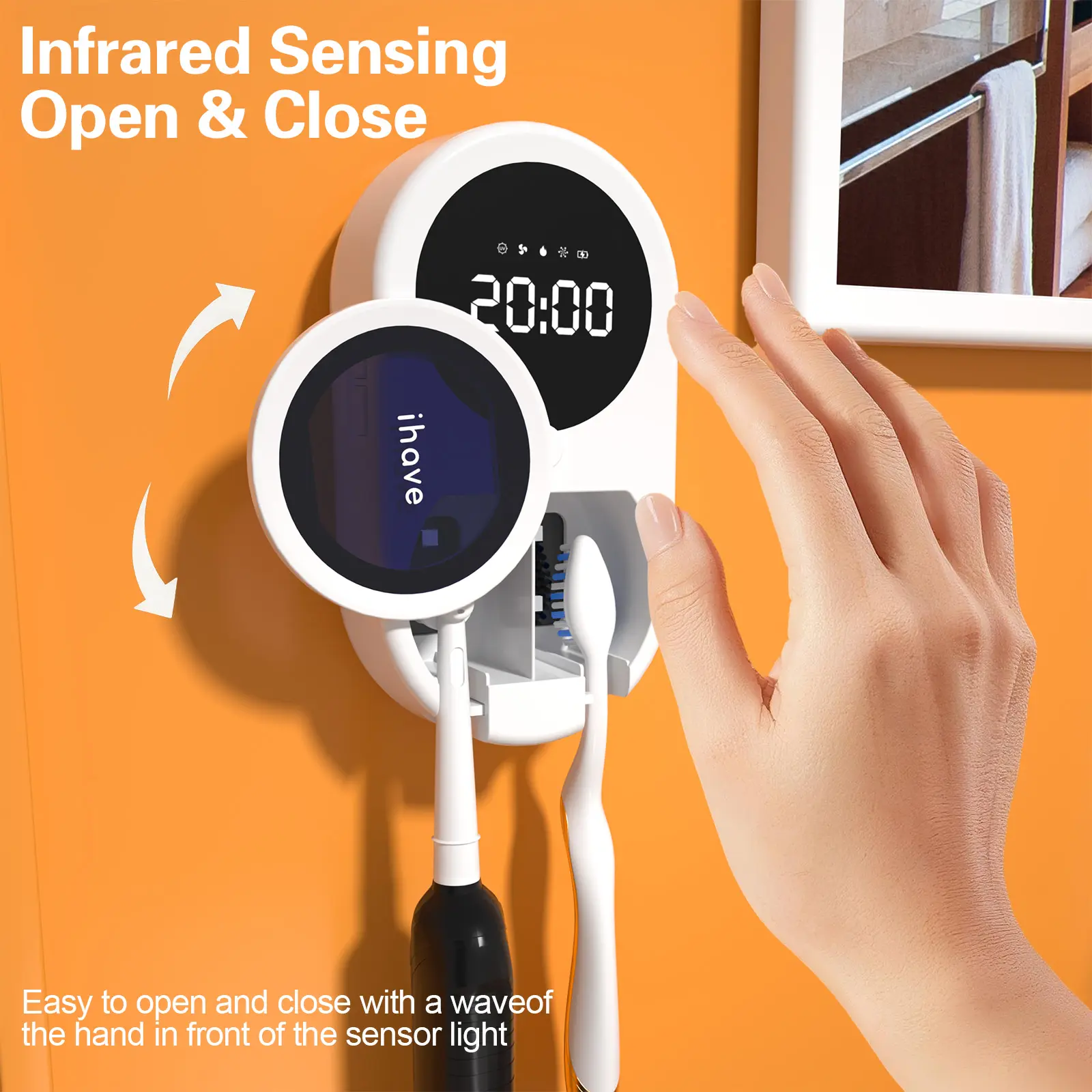 ·Convenient Gesture & Touch Control – Easily operate using intuitive touch buttons or hand gestures to rotate the cover and activate disinfection and drying automatically.