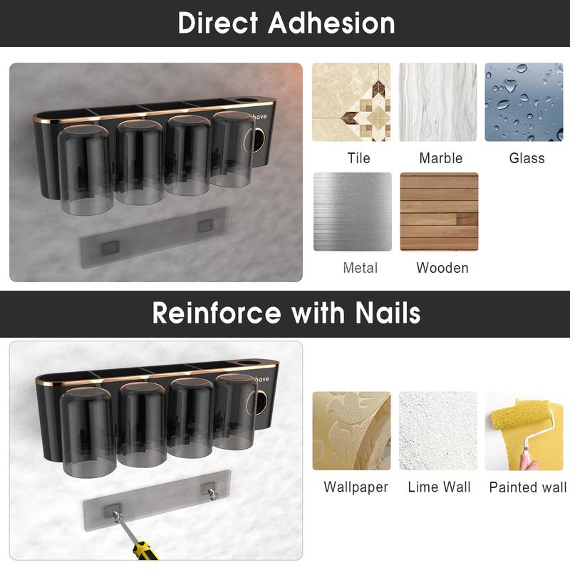 iHave Toothbrush Holders for Bathrooms with Toothpaste Dispenser, 4 Cups Toothbrush Holder Wall-mounted Bathroom Accessories