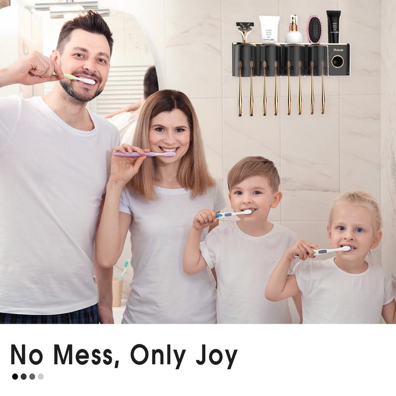5. iHave Toothbrush Holders for Bathrooms with Toothpaste Dispenser, 4 Cups Toothbrush Holder Wall-mounted Bathroom Accessories