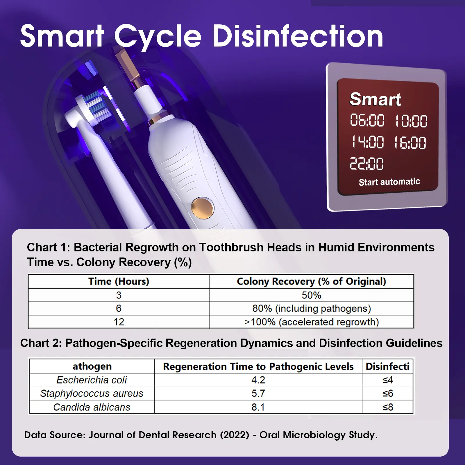 ·Intelligent Disinfection Cycle: The toothbrush sanitizer with a built-in intelligent UV disinfection system maintains a continuously hygienic brushing experience. The 4-hour Smart Disinfection Cycle automatically activates and shuts off, effectively preventing bacterial regrowth and provides 24/7 hygiene protection.