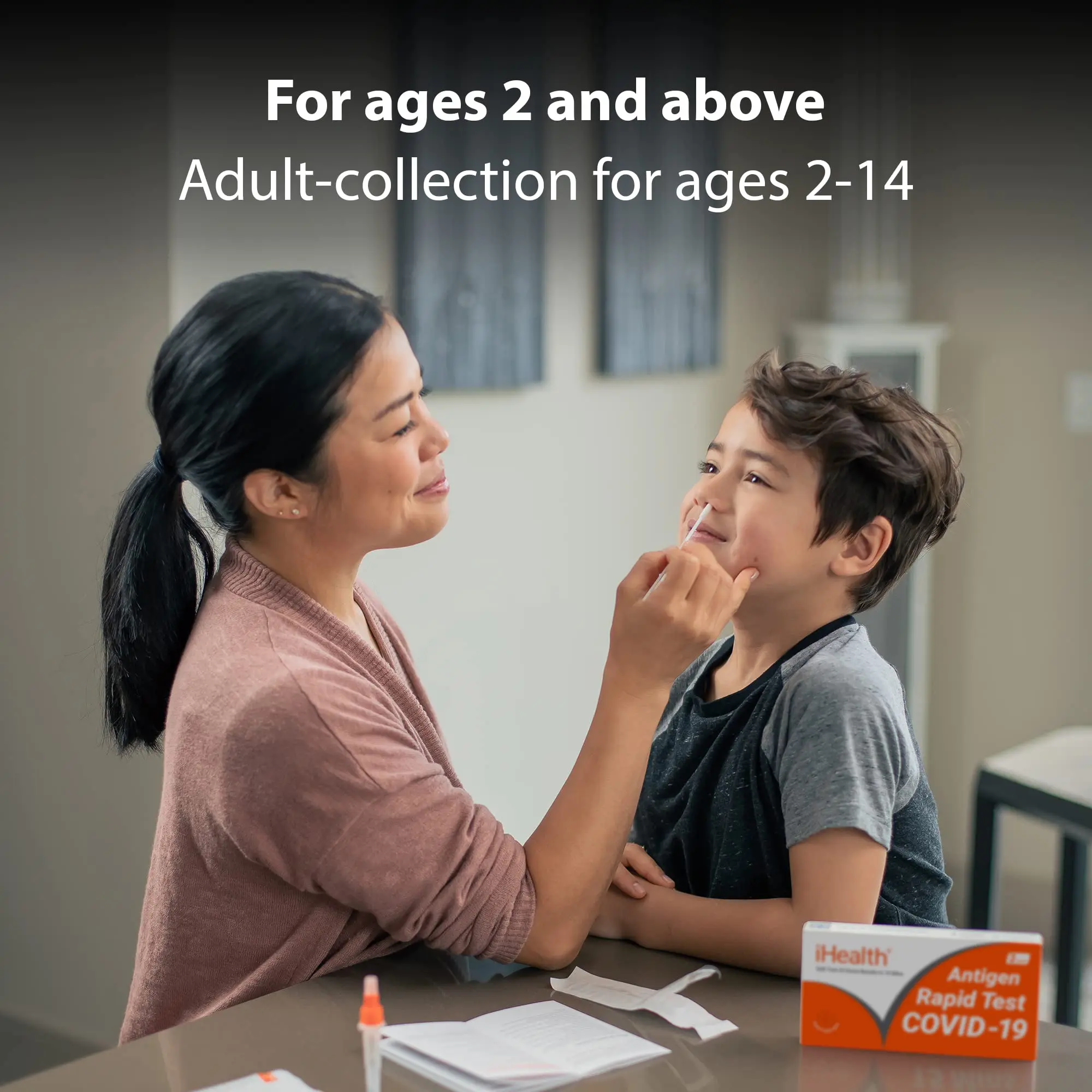 ·For Ages 2 and Above: The self-administered test is recommended for individuals aged 15 years and older. Adult-collection is required for testing children 2-14 years old.