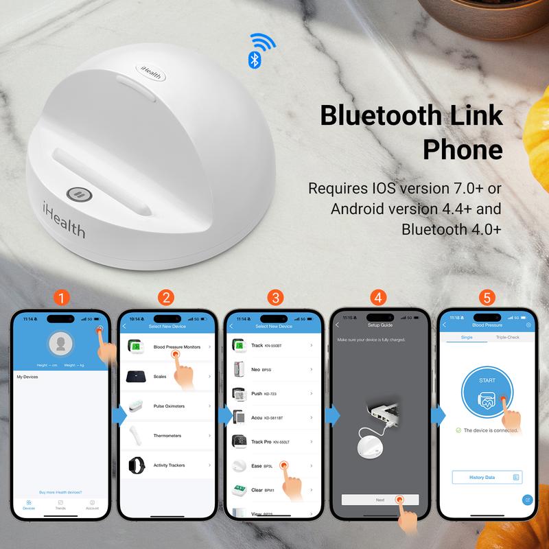 ·Simply place your compatible device on the monitor, apply the home blood pressure cuff, and measure instantly using the iHealth MyVitals, our free mobile health app. Track your trends over time, and share results right from your touchscreen.