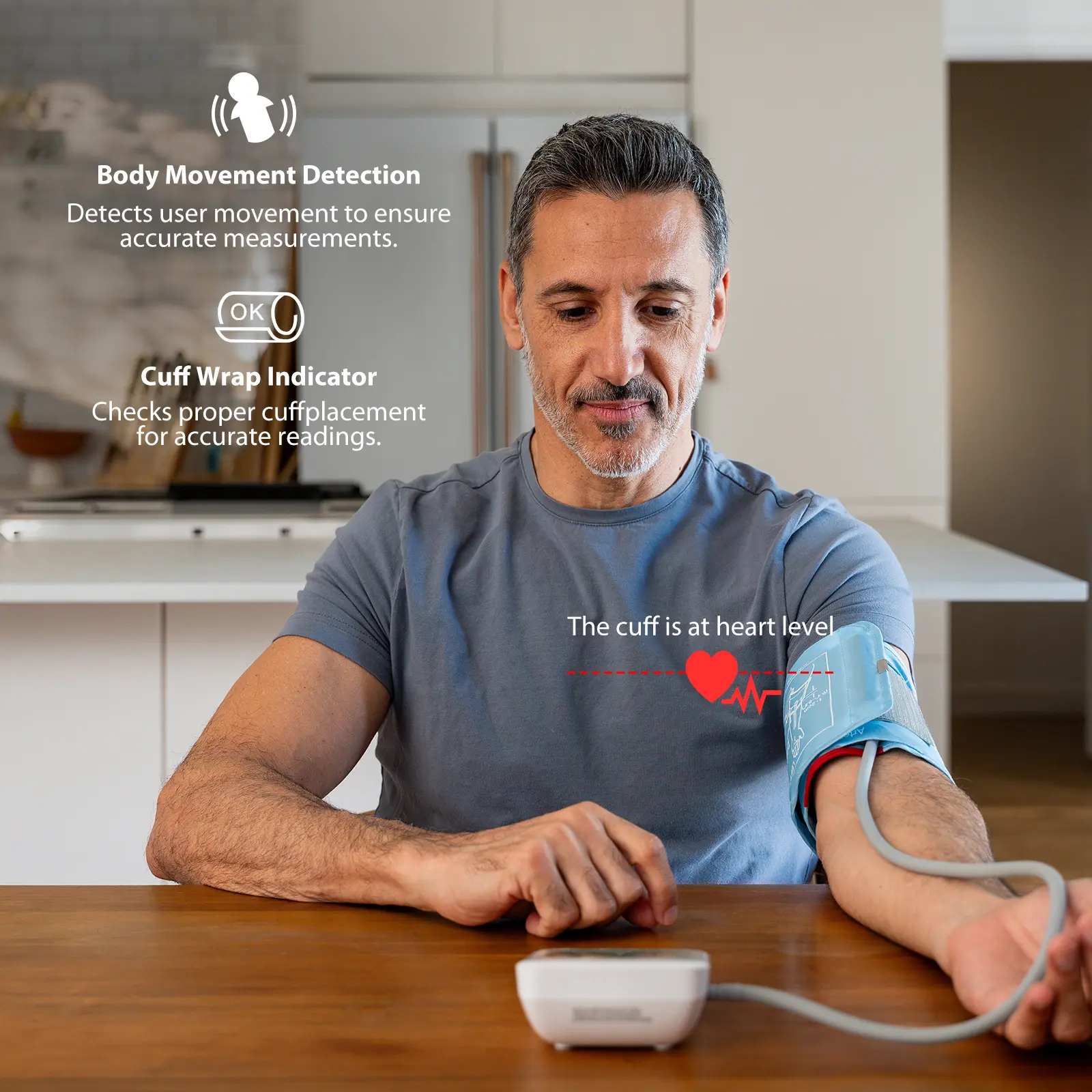 ·Smart and Accurate Home Blood Pressure Monitoring: The iHealth Home Smart Blood Pressure Monitor delivers dependable accuracy with a cuff wrap indicator that ensures a perfect fit from the start. Additionally, advanced motion detection ensures reliable results during the measurement process.