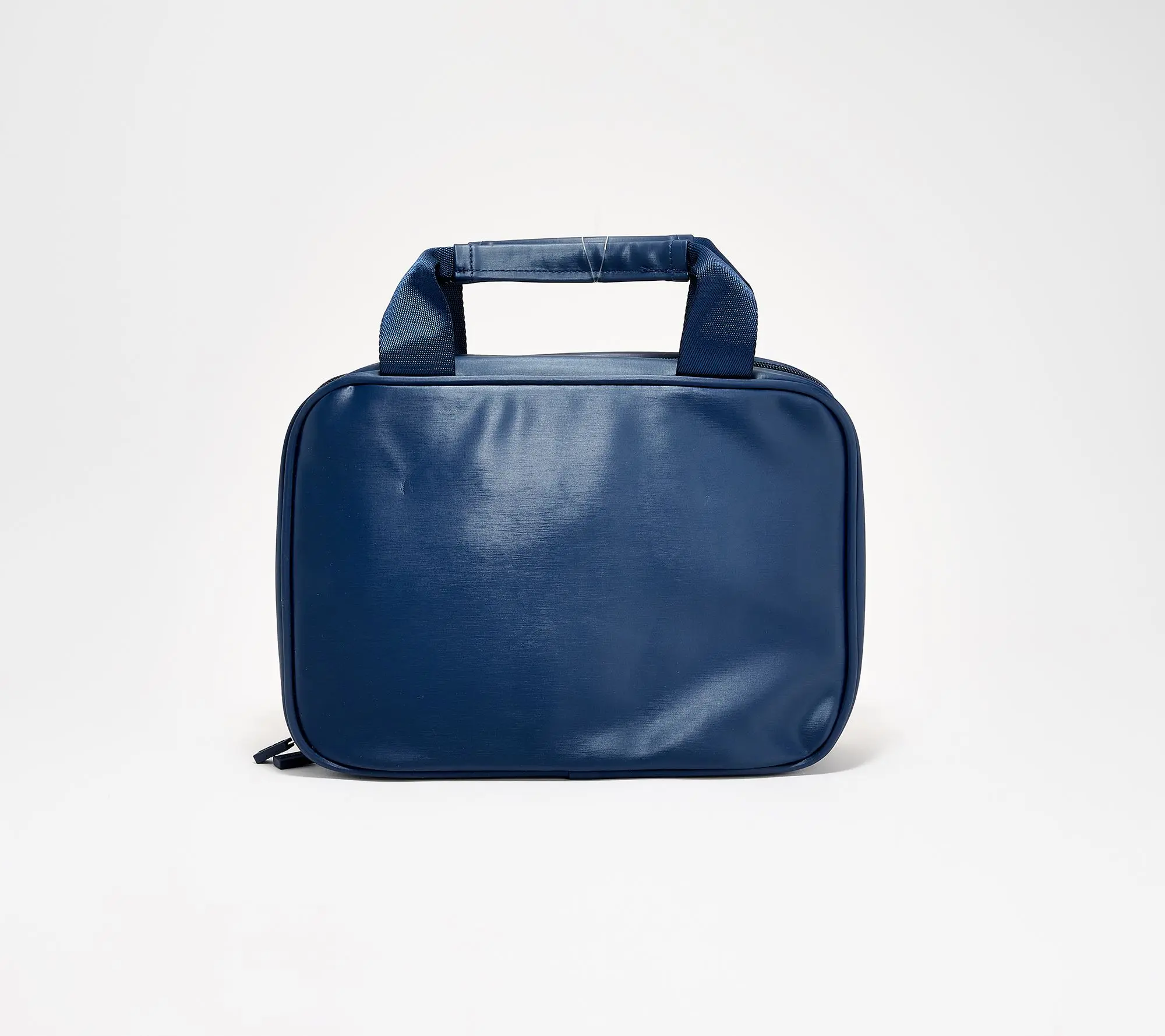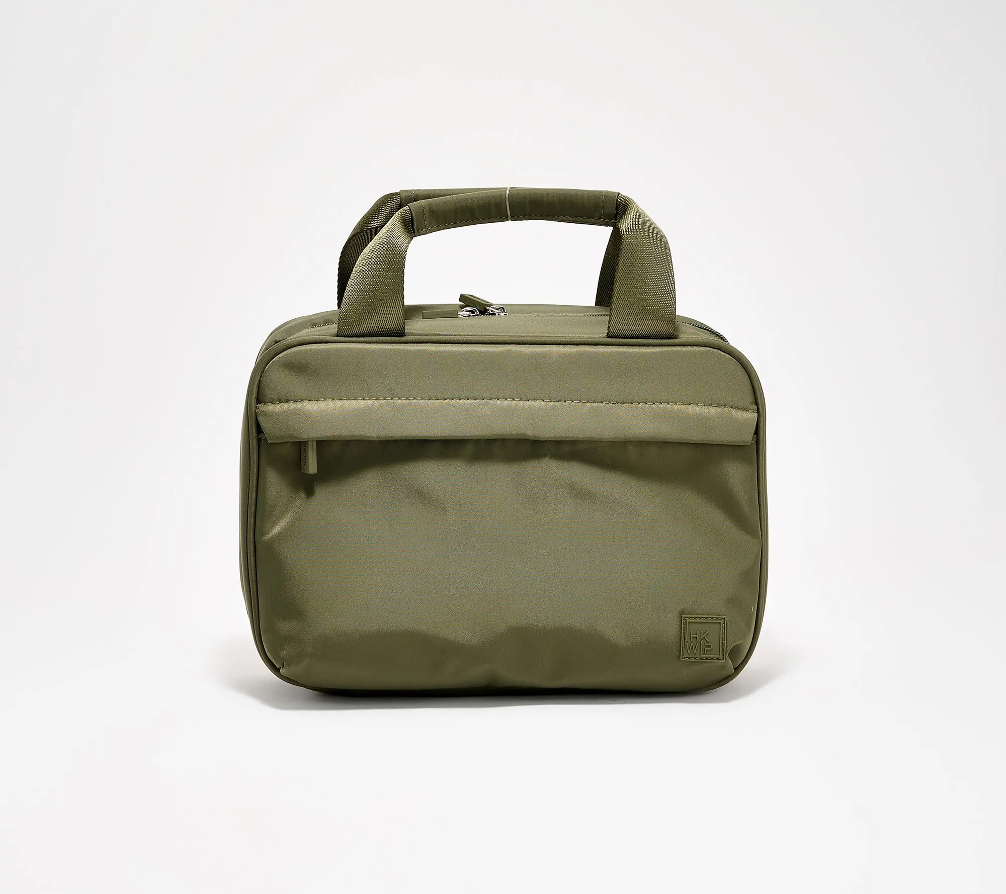 Padded top handles, front zip pocket, ability to hang with included__ hook. Luxe fabrication, light color linings. Main dual zip entry. Dimensions: 11 1/2"L x 3 1/4"W x 8 1/4"H._Interior brush holders, elastic loops, clear view wipeable zip pockets, privacy zip pocket. Content: Blk/MilOlv/Mocha/Vintgrpe:100% Nylon outer; Metrose/Metmdnt: 70%Polyurethane 30% Polyester outer;_Slvrstar/plaid: 100% polyester outer; All liings recycled polyester. COO: IMPORT