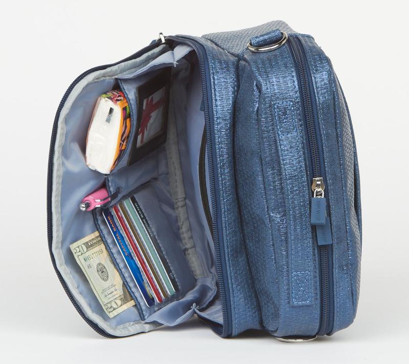 IHKWIP Everyday Explorer Crossbody with 2 Straps. 2 removable & adjustable crossbody straps, 1 solid & 1 patterned. Dual zip top main entry & dual zip gusseted front pocket. Built-in cards slots, ID window, pen holder, zip pocket. Soft-lined cellphone & glasses zip pocket on front. Int.clear zip pocket, cargo pockets, key clip. Rear snap pocket, top handle. Content: 100% Nylon Outer, 70% Polturethane/ 30% Polyester Outer; 100% Polyester Outer. 8.5"L x 4.0"W x 8.75"H. Crossbody strap: 28"-56". Weight: 14oz. Imported.
