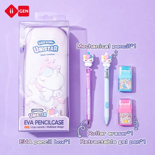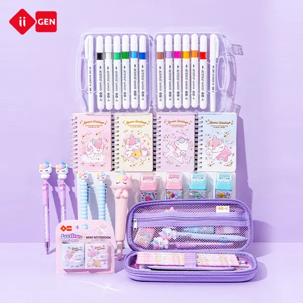 Get ready for the new school year with the iiGEN Unicorn Complete School Kit! This 16-piece set includes everything students need. It's perfect for back-to-school gifts. The kit features a pencil case, mechanical pencils, gel pens, markers, notebooks, erasers, and more. All items are designed to make learning fun and efficient.