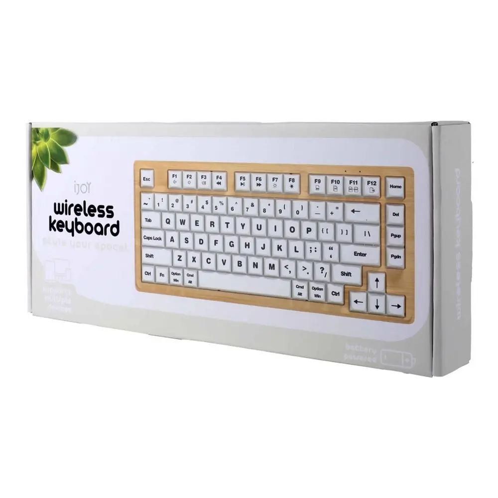 Discover the iJoy Wireless Wooden Designed Keyboardâa perfect fusion of style and functionality for your modern workspace! Its distinctive wavy design brings a fresh, stylish flair to your desk, making it a standout accessory for any tech enthusiast or professional. Enjoy wireless connectivity with a USB-A receiver, with the built-in foldable kickstands offer adjustable typing angles for enhanced comfort during long sessions, while its battery-powered operation with 2 AAA battery (not included) ensures cord-free convenience.