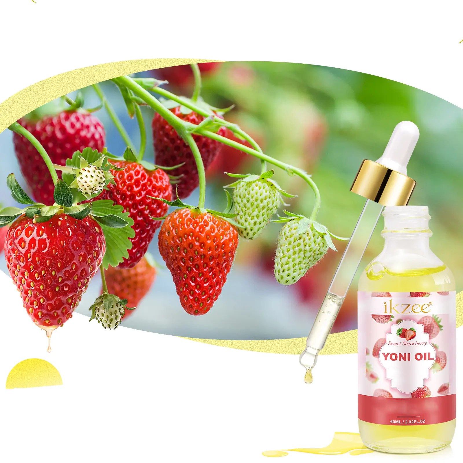 The product includes a box and a bottle. The box showcases the sweet strawberry design. The bottle has a dropper for easy application.