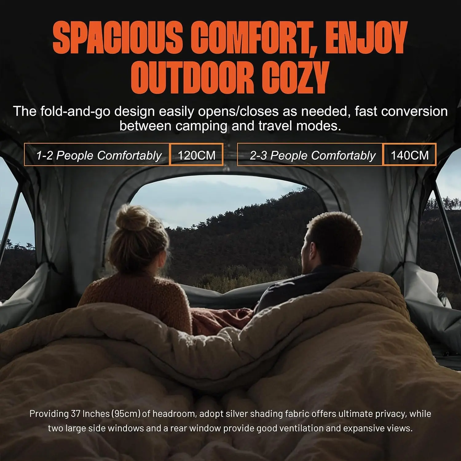 This rooftop tent is perfect for SUV and truck camping. It offers a comfortable and protected camping experience. The foldable design and ladder make it easy to use. Ideal for family camping trips, it provides ample space for 2-3 people.