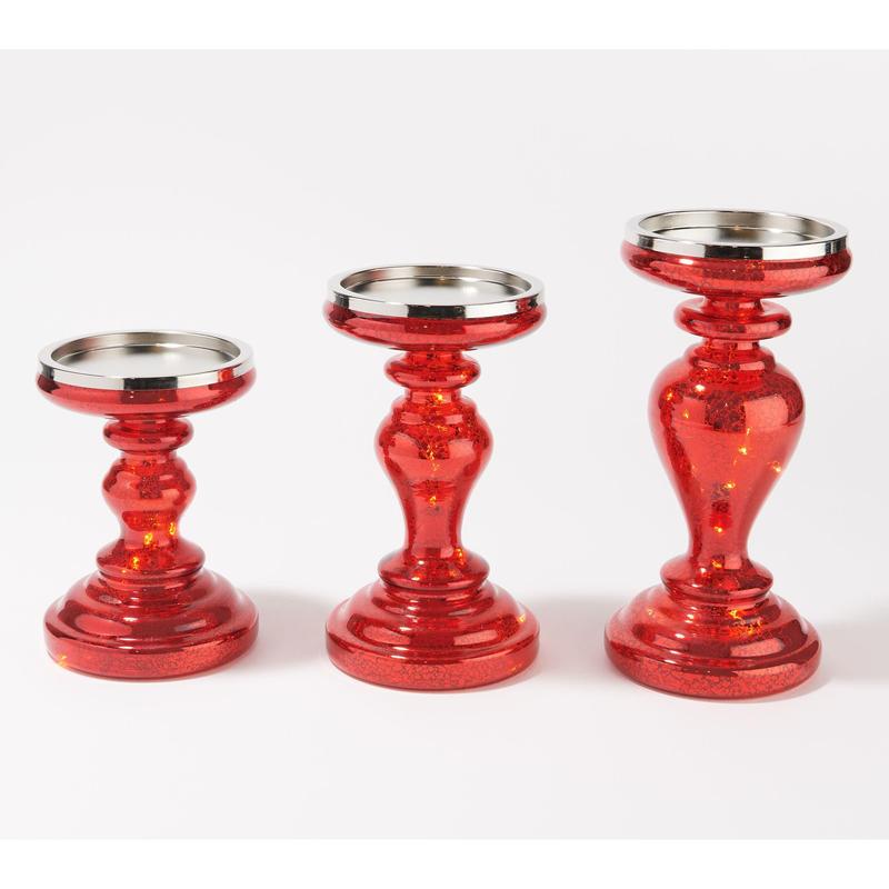 So many beautiful colors that illuminate and graduated heights in set of 3 Mercury Glass Pedestals by Valerie @QVC, Inc #candles #candleholders #homedecor #tiktokshopfinds #holidaydecor