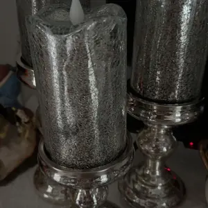 Absolutely beautiful I bought them to pair with my Illuminating crackle glass by Valerie! I really wish the pillars would’ve came with a remote so I don’t have to literally like pick it up to turn it off like the candles are! Absolutely beautiful I have no idea where I’m going to put them! Lol