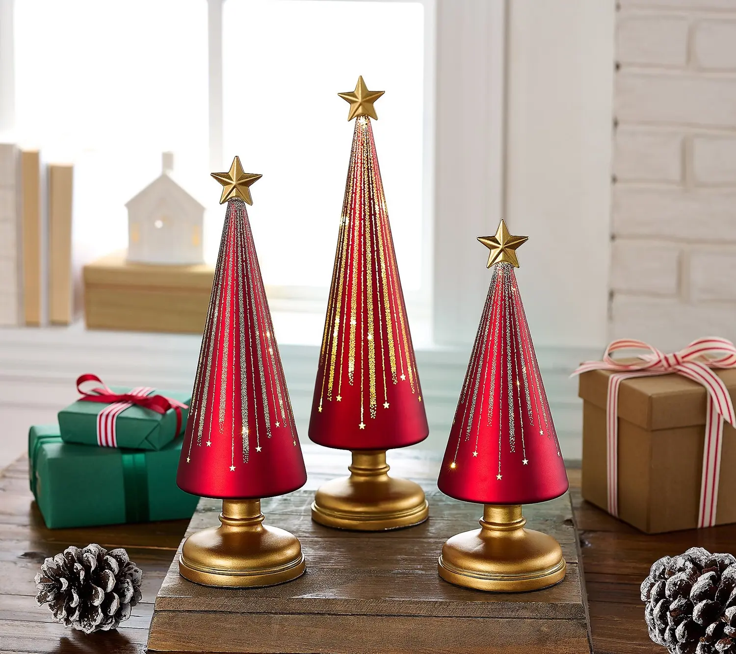 Ordered the burgundy and they are a nice true red rather than burgundy( which I was happy about) Love this designer so knew these trees would be lovely and they really are!