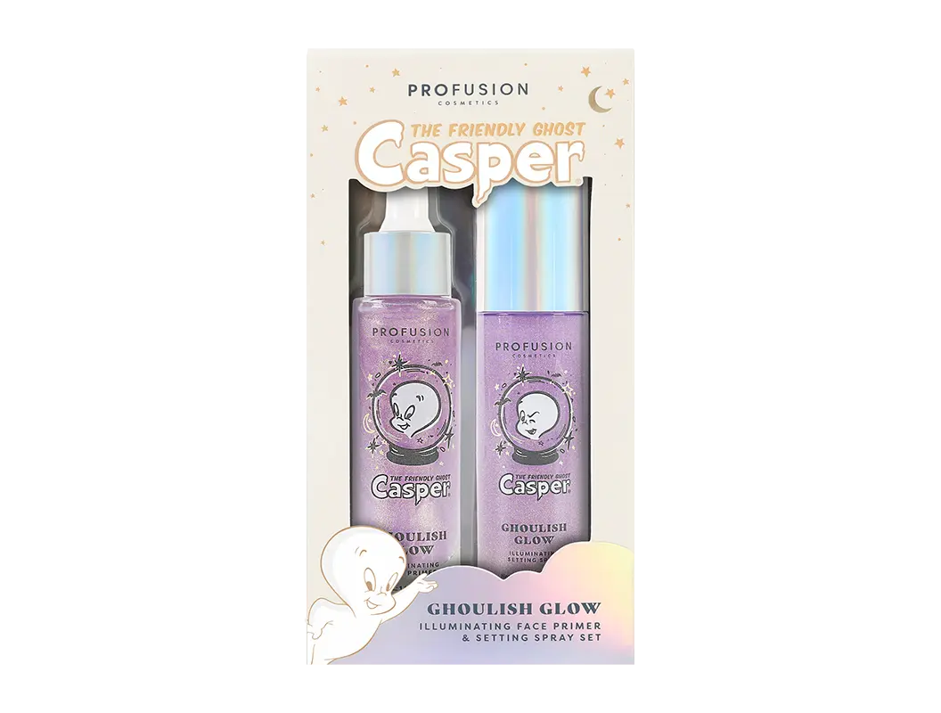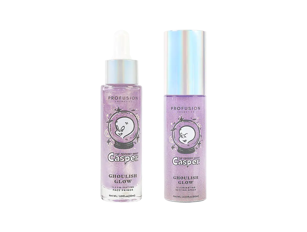 Ghoulish glo illuminating face primer and setting spray duo casper the ghost x profusion cosmetics #casperthefriendlyghost #profusioncosmetics #faceprimer #settingspray #makeup