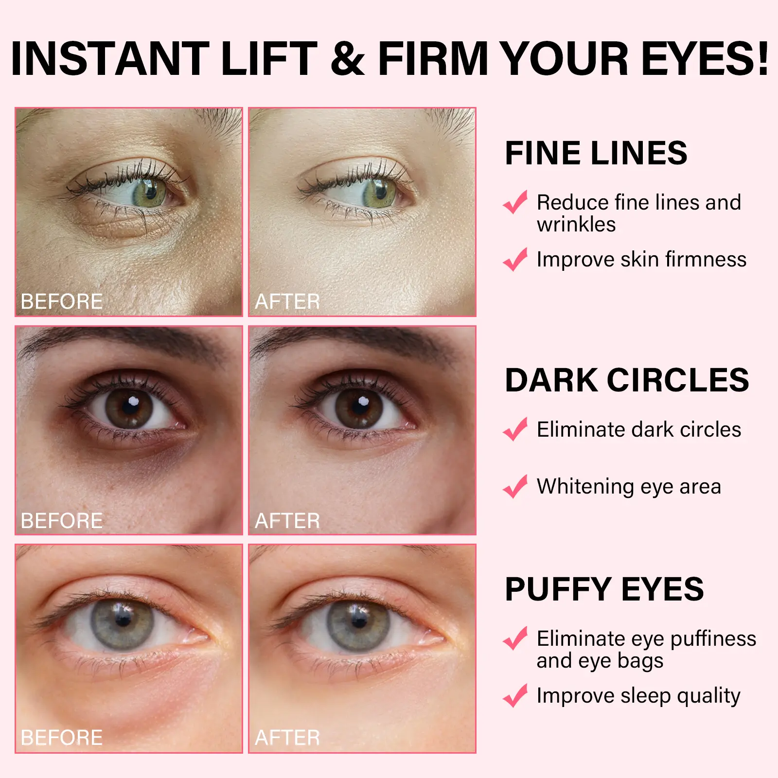 ·Erase Puffiness & Banish Dark Circles: Wake up to visibly refreshed, well-rested eyes—even after a sleepless night. Our Tightening Eye Patches are expertly engineered to tackle puffy eye bags and stubborn dark circles. The cooling gel texture provides an immediate soothing effect, reducing inflammation that causes puffiness. The instant cooling sensation relieves tension, leaving the under-eye area feeling tight, smooth, and dramatically revitalized.
