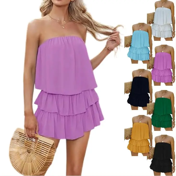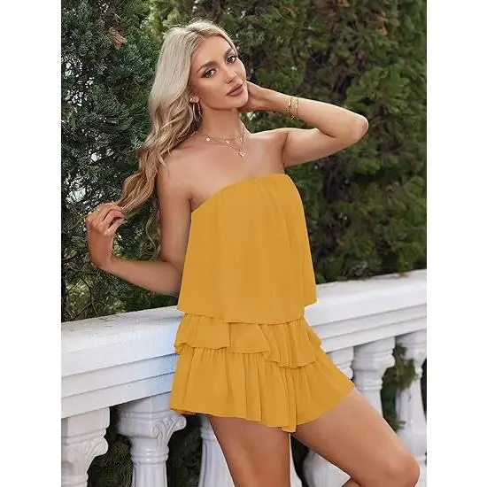 ·FASHION DESIGN:The tube sleeveless jumpsuit,strapless one piece summer outfits,smocked romper shows the body curves and hide tummy pretty well. It Features Strapless Neckline,Flowy Top Shelf,Smocked Waistband,Tiered Skirt,Trendy Cutout Design, Back Lace Up Style,Backless,Back Cutout,Lined Bust and Short Lining,Pull On Closure.