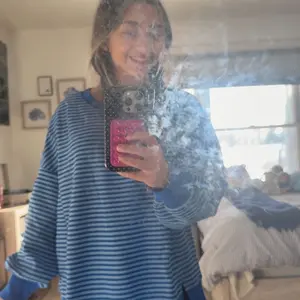 Such a cute color!! The material is definitely not very sweater mater and is thin. Definitely size up if you want an oversized fit.