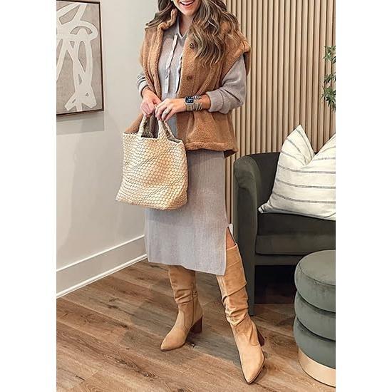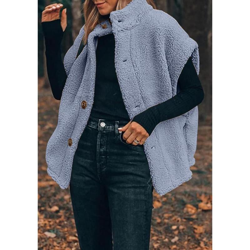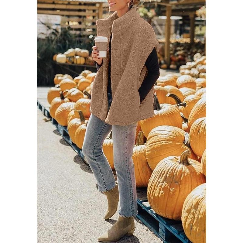 ·Features: Stand collar, sleeveless, thigh-length, baggy style, side pockets, solid color, sherpa vest for women, casual loose fleece vest for women