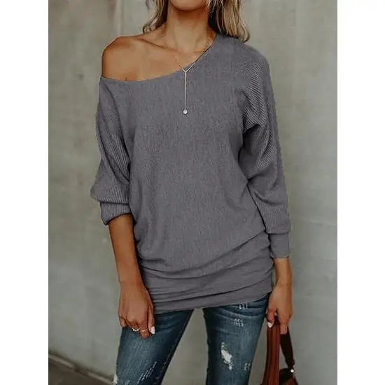 ·Baggy Shirts Features: baggy Loose Sweater Design, Off Shoulder, Bat-wing Sleeve Sweater,Off Shoulder Sweater for Women, Oversized Off Shoulder Sweater, Off The Shoulder Sweater, Batwing Tops for Women, Slash Neck Stylish Loose Off Shoulder Bat Wings Knit Sweater Pullover Tops for Women
