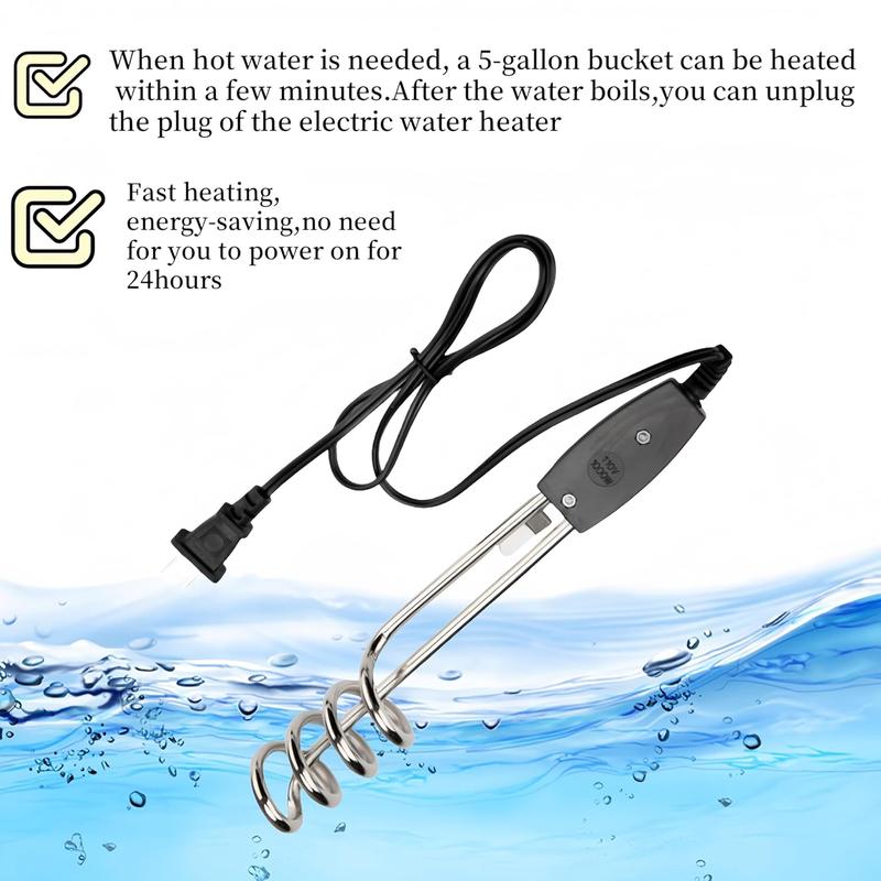 Versatile Use: This versatile electric heater is for small to medium-sized tasks. It can be on the farm, for bathroom sinks, to heat outdoor ponds, as an essential camping item, to warm inflatable pools, and even to heat buckets. It is ideal for use at , in the office, and while traveling.