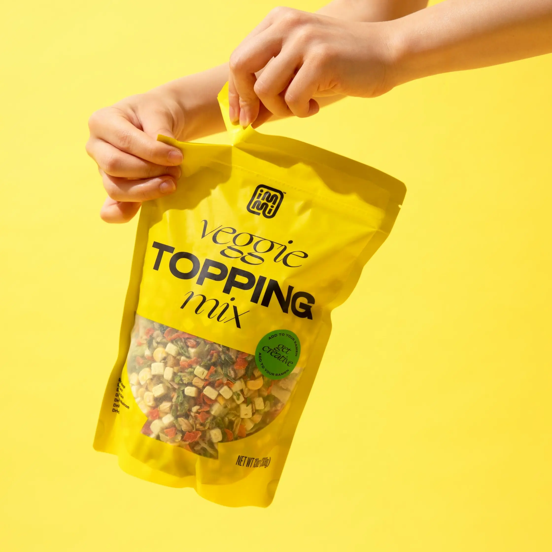I have to wonder about the labeling. How does this collection of freeze dried plant products have so little fiber? I also have to wonder about the inclusion of corn as a ramen topping. Whose idea is that? If immi is all about protein, why include the sugar and starch? Cabbage, carrot, chive, soy all make sense, but corn? Ditch the corn, please. It adds nothing to the product.