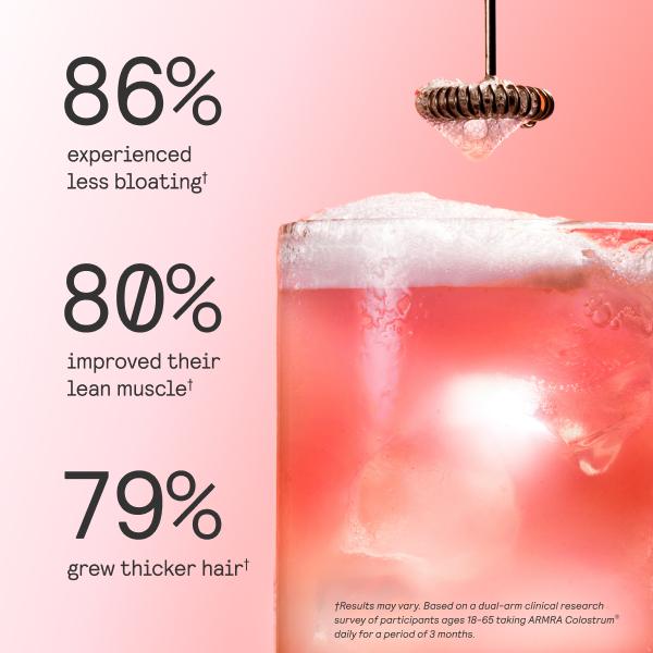 ARMRA Colostrum can be easily stirred into liquid, mixed with things like yogurt, or sprinkled into any other food, as long as it isn’t hot, as this can degrade its 400+ bioactive compounds. It doesn’t matter what time of day you take it — whenever works best for you to incorporate your 4 servings into your daily routine.