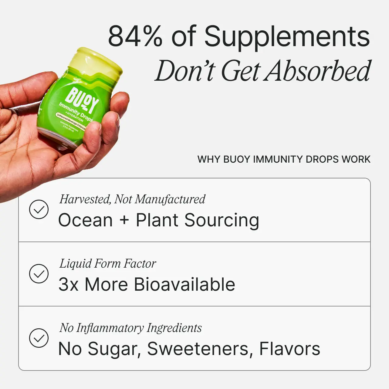 I went on a long search for supplements to take to help treat my chronic illness and I stumbled across Buoy. It puts all of the supplements I have been taking and putting them into one product. I feel more hydrated and healthier than before when I wasn’t taking them. I recommend anyone with chronic illness to use Buoy.